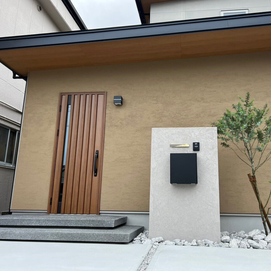 TFウォールの自由な造形力を活かし、スマートな動線と高い意匠性を両立させた「住まいの顔」です。