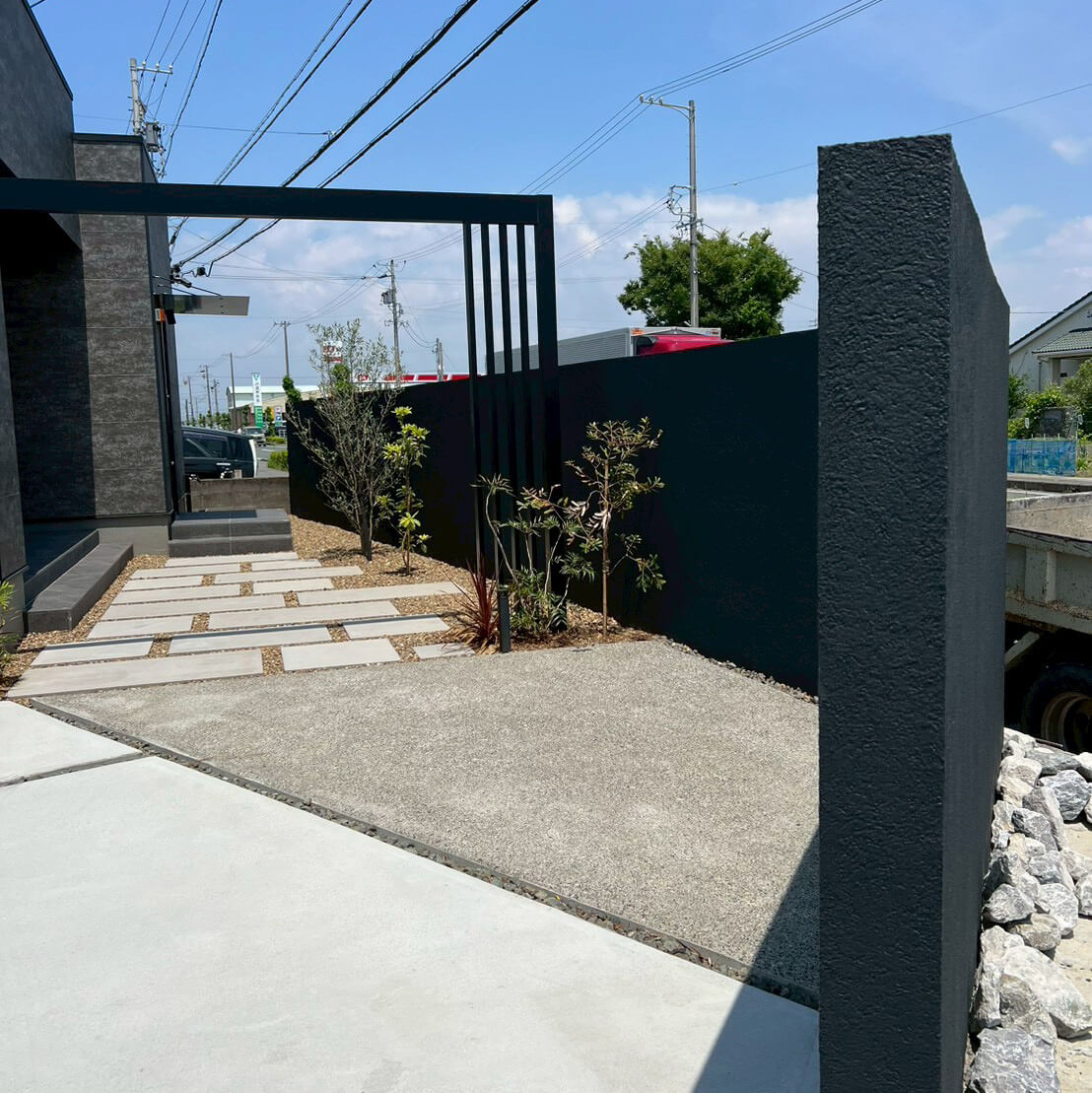 大通りからの視線を遮る高尺の壁ながら、特殊素材による軽量化で安全性にも配慮しています。